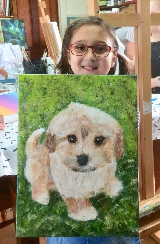 The children bring a picture they would like to paint, and step by step, I teach them how to achieve their own interpretation. This way, all ages and stages are happily creating and learning. When their artworks are complete, we will varnish and wire them giving them an artwork they will definitely be proud of!